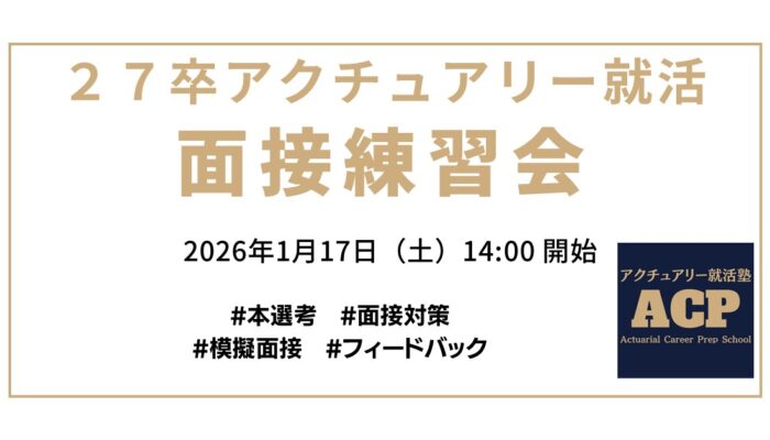 27卒以降の大学生、大学院生の方で、アクチュアリー就活に興味のある方は奮ってご参加ください。